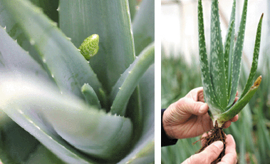 アロエは昔から「医者いらず」と言われるほど健康に役立つ成分が含まれています。とげがあってサボテンのようですが、ユリ科の多年生多肉植物で、ねぎやにんにく等の仲間です。