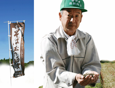協議の結果、比較的栽培が容易で近隣に特産地がなく、盆地特有の気候風土に適した「そば」作りに決まり、本格的に無農薬栽培に取りかかり現在に至ります。当初は栽培地が転作水田のため、水はけが悪く相当排水面に苦労されたそうです。徐々に作付け面積も増え、現在では4haに「常陸秋蕎麦」という品種を中心に栽培されています。