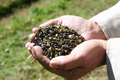 8月のお盆過ぎに種をまき、9月末頃花の見頃を迎え、初霜のある前の10月下旬頃に収穫となります。例年、平均で2tの新蕎麦が収穫されます。商品名「玉の腰」の由来は麺の腰の強さと地名の玉瀧から名付けされたそうです。