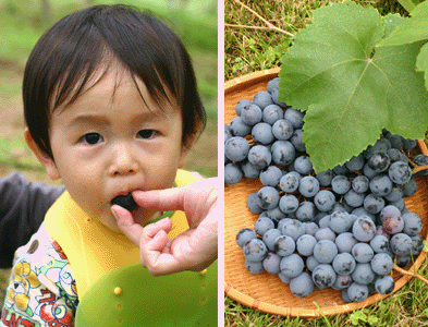 ぶどうの甘さは、果糖とブドウ糖ですばやくエネルギー源となるので、疲労・体力回復にも効果的。又ポリフェノールやアントシアニンも含み動脈硬化の予防や抗酸化作用で老化の予防にもなりヘルシーな食材でもあります。親子3人連れで来られていたお母さんも、赤ちゃんの口に・・・。安全育ちのベリーAを美味しそうに食べていました。取材させていただいている間も、次々とブドウ狩りのお客さんが絶えず、食べ放題なので「お腹いっぱいです。美味しかったです。」とお忙しそうでした。
