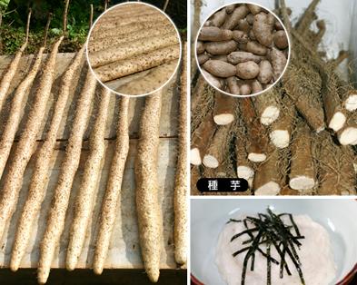 野生の自然薯は採取が大変で、なかなか手に入りにくいものです。最近になって栽培技術が開発され、畑でつくられるようになりました。すりおろした「自然薯」の粘りは滋養強壮の源として珍重されてきました。