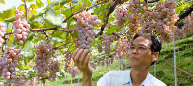 そして今、高井さんは地域との関連のなかでより意義のある事業展開をしようとされています。ぶどう生産農家との関わりのなかで果実の有効な利用法を模索し実践しているのです。過剰なぶどう、生食用としては不良なぶどうなどのワイン原料としての可能性、廉価な子供向けの清涼飲料の開発など、歴史的なものと将来の夢。元気をいっぱいいただいた取材でした。