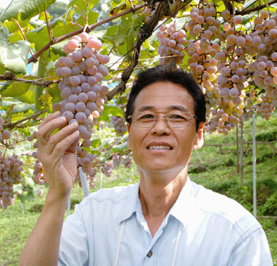 今年のぶどうの作柄はいかがですか?色々品種がありますが、デラウェアの色着きがあまり良くない。夏の雨と日照不足で色が薄いんです。それでも糖度は充分にあります。甲州、巨峰、マスカットベリーAなどは例年以上に色も濃く糖度も高くできがいいんです。糖度が上がると酸度が下がり始めるのでその時は早めの収穫になります。ワインの造りはいかがですか?今年は甲州種(カタシモ本ぶどう)で高級志向の辛口、ほんのり辛口やスパークリングワインなんかも造ります。甘口、辛口の基準はどんなところですか?ワイン中の残留糖度が目安で、およそ7〜10%が極甘口、2.5%以下で辛口。簡単に言えばそんなところです。デラ各種 高井さんの農場では100%ワイン用のぶどうを栽培しており、除草剤を使わず可能な限りの減農薬栽培に取り組んでいらっしゃいます。収穫されたぶどうはエコ農産品として認められています。