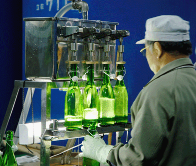 次の日、前日搾った酒粕はがしとお酒の瓶詰めを見せていただきました。杜氏自ら輪の中に入っての作業は傍目には楽しくさえ見えました。しかし、酒造りは造り方によっては一月近くも費やし、全神経を傾ける厳しいものです。