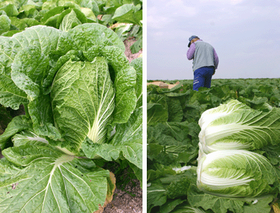 2,3日前が初収穫で、うかがった日が2回目の収穫の真っ最中でした。質を素早くチェックした白菜は、手際よく不要な葉を取り除き、お二人の息も良く台車の上で箱詰めされていきます。2年ほど前に各種野菜が高騰した時期がありました。初霜はまだですが、温暖化の性なのか・・・今年は暖かく、台風も少なく育ちは順調、玉も大きいようです。でも生産者にとっては嬉しいやら、悲しいやら・・・。