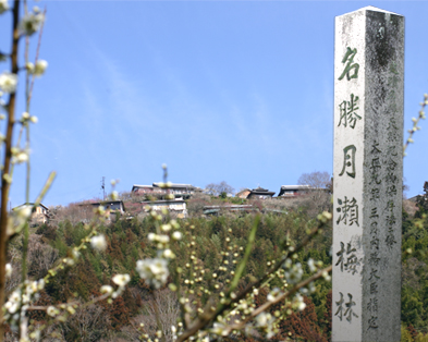 頂上の展望台の側には、梅林の起源になった真福寺があります。1205年に境内に梅を植えたのが始まりだとか。月ヶ瀬梅林は松尾芭蕉や、頼山陽たちが称賛したすばらしい景観の一つで、