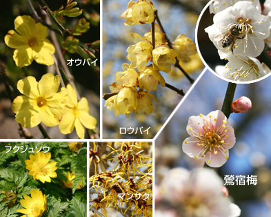 黄梅(オウバイ)黄色い花が梅に似ていることと咲く時期が同じことからこの名前がついていますが、