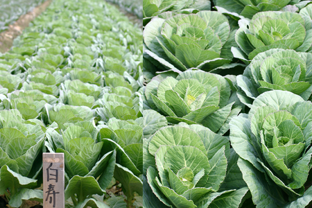 栽培園では8月に植付けた初夢、白寿、紅寿、白はと、紅はとの5品種が品種ごとに並び、出番待ちの状態です。中では白寿が一番人気があるようです。