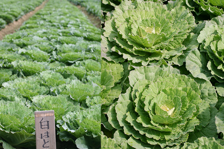 10月の中旬、葉牡丹の栽培園で消毒作業に精を出されている、三重県の名張園芸福祉ボランティアの会の方にお話をうかがう事ができました。