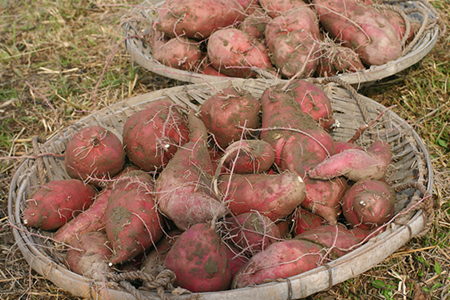 ご存知かも分かりませんが、サツマイモは収穫直後よりしばらくねかせた方が水分もとび、熟成し、より甘味が増します。もともと甘い物は貯蔵すると益々甘くなります。貯蔵して2、3ヵ月のおイモが一番甘いといわれています。ご好意でいただいた「鳴門金時」は待ちきれずに、教えていただいた大学芋で美味しく頂きました。