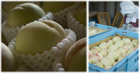 収穫された清水白桃は、よそに比べると少し赤みが差しています。聞いてみると、この農園では、独自の販売ルートで消費者の元へ届けており、出来る限り